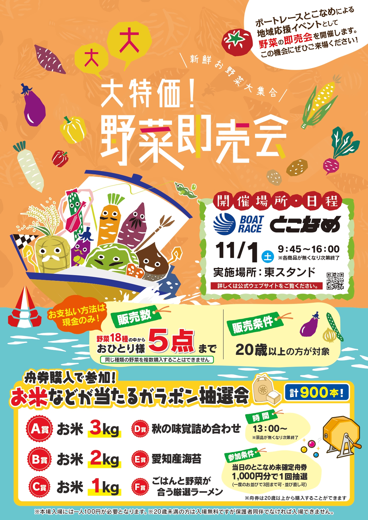 旬で新鮮な野菜を大特価でご提供!商品が無くなり次第終了となりますので、予めご了承ください。