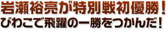 迎えた優勝戦は5号艇からのスタート。SG、GⅠ覇者が顔をそろえるハイレベルな一戦となった。レースは枠なり12/3456でスタート。4号艇・坪井康晴がインの3艇をまくりにいく構えで内へ航路を絞りながら1マークを旋回するなか、岩瀬はその外から仕掛ける。2号艇・中島孝平と3号艇・大峯豊をまくり切り、さらに1号艇・佐藤航と坪井を差す絶妙な旋回を決め、バックストレッチで先頭に立った。2周1マークでは佐藤に内を突かれそうになる場面もあったが、冷静に対応して主導権を守る。その後は後続との差を徐々に広げ、危なげない航走でゴールイン。5-4-1で決着し、万舟券決着となるなか、岩瀬は特別戦初優勝を成し遂げた。